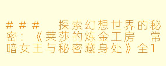 ### 探索幻想世界的秘密:《莱莎的炼金工房 常暗女王与秘密藏身处》全12集高清版详评