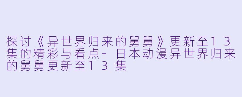 探讨《异世界归来的舅舅》更新至13集的精彩与看点