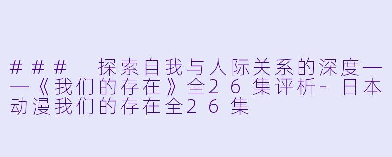 ### 探索自我与人际关系的深度——《我们的存在》全26集评析