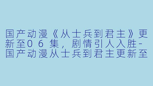 近期,国产动漫《从士兵到君主》更新至第6集,吸引了众多观众的关注。这部作品讲述了一名普通士兵在战乱背景下逐步崛起,最终成为一国君主的励志故事。剧情设定在一个充满纷争的古代王国,主角通过一步步的努力与勇敢,克服各种困难,展现了人性的光辉与成长的艰辛。