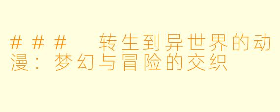 ### 转生到异世界的动漫:梦幻与冒险的交织