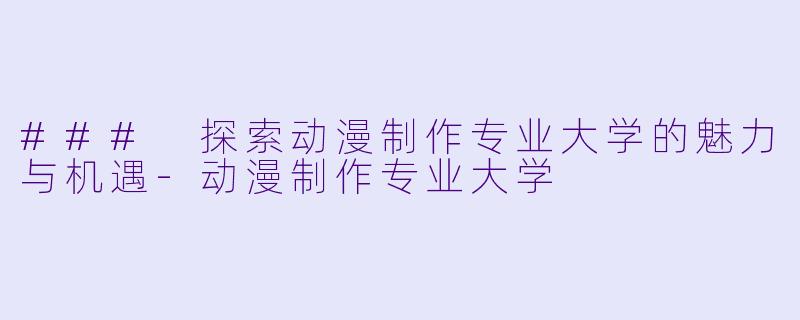 近年来,随着动漫产业的蓬勃发展,越来越多的高校开设了动漫制作专业,吸引了众多热爱动画和漫画的学生。动漫制作专业不仅教授学生绘画技巧、故事编写、角色设计等基础课程,还涵盖了3D建模、特效制作和声音设计等先进技术,培养学生全面的专业素养。