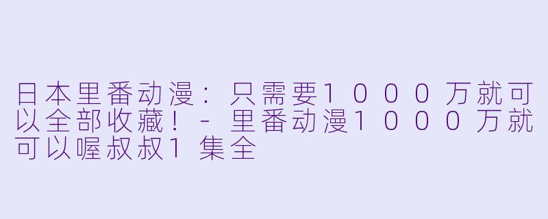 最近,日本里番动漫迎来了一波新的热潮,许多叔叔们都被这些精彩的内容所吸引。而现在,只需1000万日元,你就可以集齐所有叔叔喜欢的里番动漫1集全!