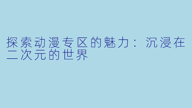 总之,动漫专区不仅是作品的汇集地,更是一个充满创意与激情的社区,让热爱动漫的人们能够在这里畅所欲言,分享彼此的热情与梦想。