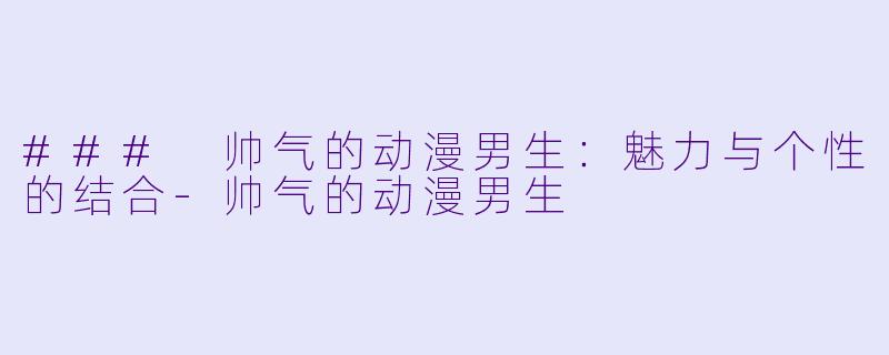 在动漫的世界中,帅气的男生总是能吸引观众的目光。他们不仅外表俊朗,往往还拥有独特的个性和迷人的魅力。这些角色通常具备一些共同的特征,如深邃的眼神、优雅的气质以及强烈的自信。无论是战斗中的英勇,还是日常生活中的幽默,他们总能给人留下深刻的印象。
