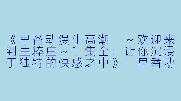 《里番动漫生高潮 ~欢迎来到生粹庄~1集全:让你沉浸于独特的快感之中》