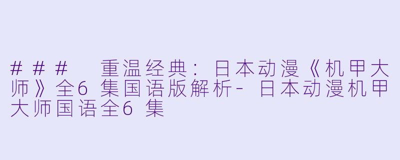 日本动漫《机甲大师》是一部经典的机甲题材动画,近日推出了全6集的国语版本,吸引了众多粉丝的关注。这部作品讲述了在未来世界中,人类与强大的机甲战斗的故事。主角在剧中经历了友情、成长和挑战,展现了勇气与智慧。