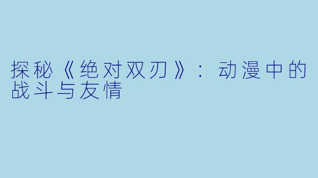 不仅如此,《绝对双刃》的配乐也为剧情增添了不少魅力,动感十足的插曲与紧张的战斗场景相辅相成,使得整部动漫更加引人入胜。如果你是动漫爱好者,这部作品绝对值得一看,不仅能够感受到紧张刺激的战斗,还能体会到角色成长的感人历程。