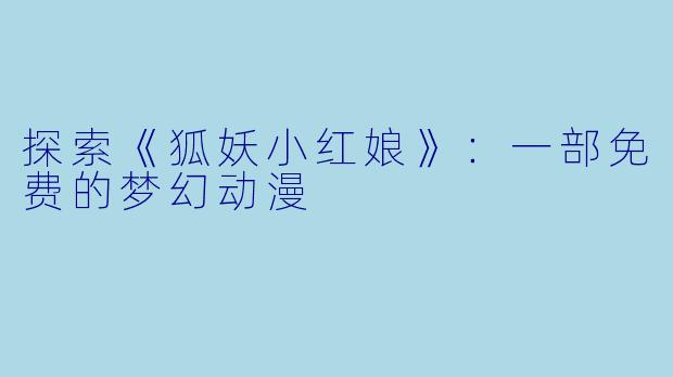 探索《狐妖小红娘》:一部免费的梦幻动漫