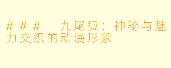 九尾狐,这一源自于中国和日本等东亚文化中的神秘生物,近年来在动漫界备受追捧,成为许多作品中不可或缺的重要角色。九尾狐通常被描绘为智慧、魅力与力量的化身,其九条尾巴象征着灵力的强大。无论是在古老的传说中,还是现代的动漫作品里,九尾狐都能吸引大量粉丝。