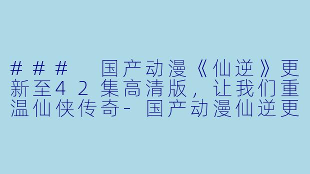 近日,国产动漫《仙逆》迎来了全新更新,目前已经更新至42集高清版。这部改编自著名网络小说的作品自上线以来便备受关注,其精美的画面和引人入胜的故事情节吸引了大量观众。