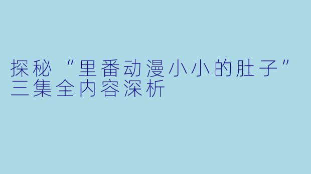 “里番动漫小小的肚子”是一部备受关注的动画作品,以其独特的风格和情节吸引了众多观众。该系列共有三集,每一集都通过生动的故事情节和精致的画面展现了可爱的角色与奇幻的世界。在这三集中,观众不仅能感受到轻松幽默的氛围,还能体会到角色之间深厚的友情与温暖的情感。
