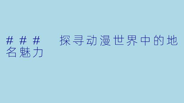 通过探寻这些动漫地名,我们能够更深入地理解角色背后的故事,感受那份来自虚拟世界的温暖与激励。
